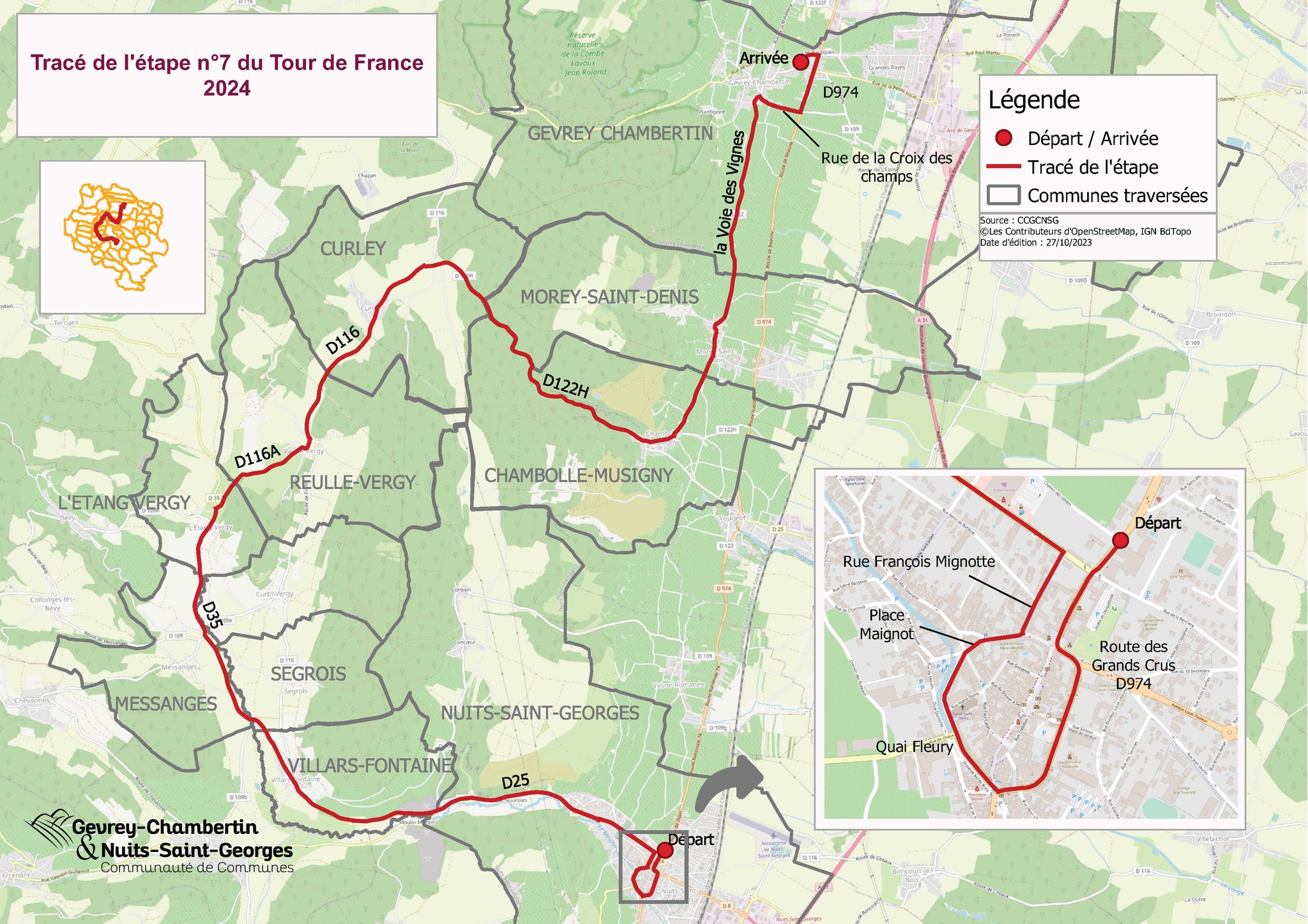 carte TOUR DE FRANCE ETAPE GEVREY NUITS DETAILS VOIES ET ROUTES